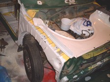 (2月15日)先日の続きで右半分です。同じような状況でした。あとは錆穴をPOR&FRPで埋めてシリコンシーラントを併用しながらフェンダーの装着の予定。シリコンは万が一外す時に大変かなぁ・・・・?!