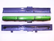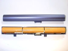 まずはVAIOのバッテリーパックの分解です。棒状なので雑巾絞りのように何度も絞って上下のカバーのすき間を発生させます。間にマイナスドライバーなどを入れてこじって開封です。ドライバーなどで内部をショートさせないようにご注意下さい。