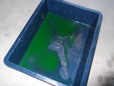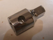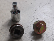 (8月19日)オイルパンの純正ドレンボルトを外す時のソケット。ラチェットが入る隙間が狭い場所なのでソケットを加工してドライバーで回せる様に加工しました。いつもの加工屋さんのTさんに無理を言ってボール盤で穴を開けて頂きました。なかなか硬くて手こずりました。