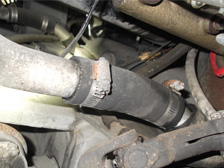 (1月1日)年末年始で忙しく手つかずなのでラジエター液の漏れは続いてます。今日は漏れ箇所を特定しました。フロントラジエターとリアエンジンを結ぶ経路での漏れです。何カ所かでアルミパイプとホースで連結し結ばれています。ゴムホースが劣化し硬化してるので交換時期かも。今回はとりあえずバンドの増し締めで対応しました。