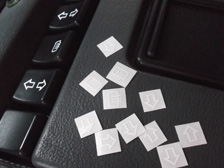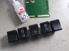 (8月24日)以前に綺麗にしたパワーウインドウスイッチ等のカッティングシールの絵。今回、薄くて強粘着のシールで再作成したので張り替えました。