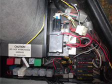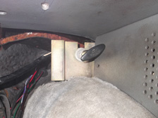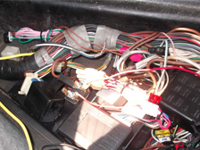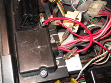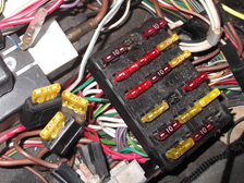 (1月25日)電気系トラブルで有名なデロリアン。この部分がヒューズやリレーの配電盤の部分。ヒューズBOXの3カ所溶けてバイパスでヒューズソケットが取り付けられています。どの部分のバイパスヒューズなのか不明だったので配線図で確認してシールを貼っておきました。同じ様な事が出先で起こる可能性が有るのでヒューズやヒューズソケットは車載です。エンジンルームに意味不明のパーツが有ったのですが調べてみるとスピーカー。セキュリティかキーレスのチャームスピーカーの残骸の様です。配電盤付近からの意味不明な配線の謎が解けました。もちろん撤去。テールランプのブレーキランプの一部が点灯していない事が判ったので調査。ここもデロリアンの泣き所で球のソケットが付いている基板の接触不良が原因です。テスターで調査しても導通有りなんだけど装着すると点かない(^_^;)