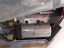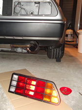 (1月26日)両方ともテールランプを外して基板の接触不良になりやすい部分をハンダ付けしました。無事に全てのランプが正常に点灯するようになりました〜。エンジンルーム内の左後部の壁内に設置してあるチャコールキャニスターを外しました。ここを外すとラジオのパワーアンテナにアクセスできます。室内後部からパワーアンテナに向かって配線が行っているので、バックカメラの配線を通す為に外したのです。バックカメラの配線は更に後ろに持っていきテールランプまで開通できました。