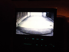 (1月27日)バックカメラは2個のナンバー灯の中間に装着。思い切って穴開けです。しっかり各所を養生しての作業でしたが最後の最後にナンバープレートに傷を付けてしまいました。暇を見て再発行で交換したいと思います。カメラの配線も無事に終了し設定を終えて、バックギアに入れると無事に映りました(^O^)