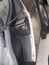 (8月22日)運転席のシートベルトの引き込み口のパーツが無いなぁ〜と思ってたら中に転がってました。すぐに外れるので両面テープ併用で固定。