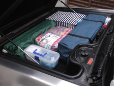 (4月25日)トランクに、タープ、椅子、机、ベビーカー、工具、などを入れてみました。なんとか入りますねぇ。