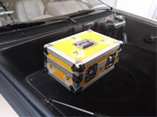 (5月20日)頑張って作ったプルトニウムケース。トランク内に収まる高さで作ったので収まりをチェック。ケースが予定よりも1cm程背が高くなってしまったのですが、なんとか収まりました。