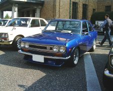 510ブルーバードです。綺麗に仕上がってて見とれちゃいました。以前拝見したストラトスも来られてました〜。同級生のお父さんのT2000も健在です!