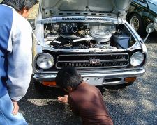 大岸さんはスカイラインの後で旧車談義。