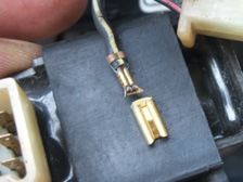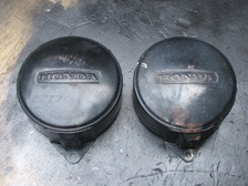 (6月24日)アイドリングを調整しようとキャブを見ると6/7に割ってしまったチョークスターターバルブですが、わずかなねじ込み感覚があったので良しとしていたのに振動で外れてしまっていました(T_T)。奥に有る破片を取り出して瞬間で接着して、内面を半田ごてで溶かし付けました(外側はねじ切りしてある為そのまま)。ウインカーの不具合ですが、1号機とウインカーリレーやオーディブルパイロットなどを入れ替えて試しましたが問題ない様子・・・。テールランプ周りの配線をチェックすると酸化したギボシを発見!。ここを抜き差しして接触を回復すると問題が解決しました。次に入手した純正ステップに交換しました。ついでに家に眠っていた程度中のジェネレーターカバーに交換しました。