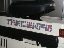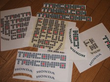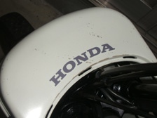 (6月20日)ボディステッカーですが色の調整や書く言葉などを試行錯誤しました(^_^ ; )。まず前方上部のHONDAステッカーを貼りました。続いて両サイドの純正では「MOTOCOMPO」の部分のステッカーです。左右非対称の文字にしました。言われないと気づかない感じになっていると狙い通りなんですが(笑)
