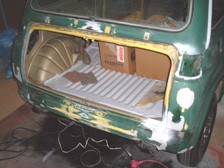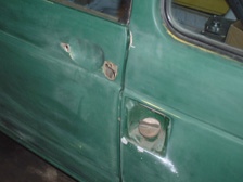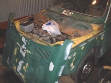 (2月11日)錆穴を2カ所塞ぎました。電動工具や技術もないのでおきまりのPORとFRPです。そろそろ塗装をすることを考えてトランクリッドとボンネットフードを外しました。トランクのヒンジは左右とも使えそうにないです(T_T)。リペアできるかなぁ・・・・