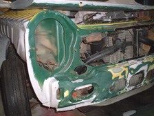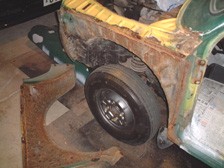 (2月15日)先日の続きで右半分です。同じような状況でした。あとは錆穴をPOR&FRPで埋めてシリコンシーラントを併用しながらフェンダーの装着の予定。シリコンは万が一外す時に大変かなぁ・・・・?!