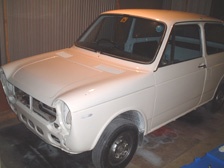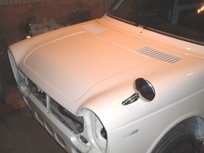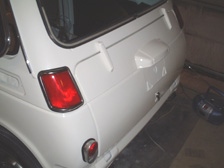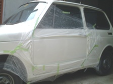 (4月4日)今日は昼から曇り始めるとのことだったので朝から急いでボンネットヒンジ塗装・トランクヒンジ塗装・助手席ドアの再塗装をしました。助手席ドアだけ妙に艶が出ちゃいました(^_^ ; )。メッキ依頼していたネジ類も仕上がってきました。テールライトとフェンダーウインカーのメッキ部は錆を落としたので「シールコート」というメッキ用の透明スプレーを噴いてみました。少しくすむかもしれませんが、すでにくすんでいたので良しとします。ドアウェザーストリップを装着しドアキャッチも取り付け車らしくドアが開閉できるようになりました。後部座席サイドのウェザーストリップも装着しましたが分厚すぎる為閉まり非常に悪いのでちょっと考え中です。ボンネットとトランクも装着しSグレードの証S800ミラーも装着です。勢いに乗ってテールランプも装着しました。今日も23:30作業終了・・・ひざがガクガクです(T_T)