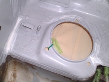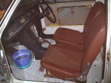 (4月9日)再利用するフロントバンパーの裏面にPOR15シルバーを刷毛塗りしました。室内足下の外気導入口は片側が割れていたので補修して車体に装着しました。ウインカーレンズは色が飛び気味だったので裏面より塗装をして正常な色合いに戻しました。ステップバンの荷室に積んで保管していた邪魔だったシートを仮置きしてみました。でも茶色はなぁ・・・(T_T)。再利用不可能かもと思っていたフロントエンブレムも再塗装により良い感じになりました〜(^_^)v