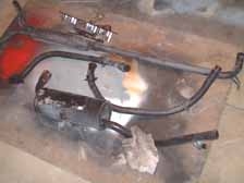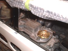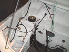 (4月16日)ジャパネットタムソです〜。ケルヒャーの高圧洗浄機でシャーシ下やホイルハウスを洗浄しました。ついでにガレージのこけや汚れも掃除してちょっとだけ新築気分に戻れたかな(^_^;)。次にフューエルリッドオープナーのスプリングとピンが無かったので適当なもので純生と同形状に作って装着完了!。