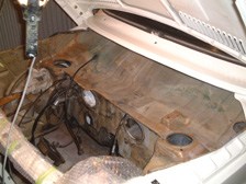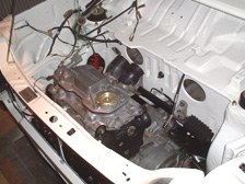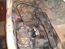(4月13日)エンジンルームに飛んでいた塗装ミストを掃除しました。ハーネスの巻きテープがボロボロなので巻き直す為にコネクタ類を外し、ファイヤーウォールから出た状態にしました。キャブを外したりヒーターファンを外しました。このままだとエンジンを降ろして磨いたりエンジンルームを塗装しちゃいそうだなぁ・・・。