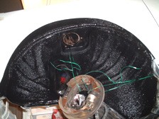 (4月11日)シフトブーツを交換しました。ミシンで縫おうと思いましたが丁度良いサイズのお手製の物が業者さん?!の出品で出ていたのでサイドブレーキブーツと一緒に購入し装着しました。ステーに難有りですがリアバンパーを装着。バルクヘッドを純生通りの境界線でツヤ消し黒で塗ってグリルにエンブレムを仮付けしてみました。満足な顔つきになってきました(^_^)v