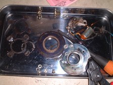 (8月18日)社外コイルにプラス線とポイントリード線を接続しエンジン始動を確認しました。なかなか調子良い感じです。この組み合わせでコイル等を本固定して様子を見ようかなぁ〜