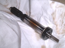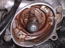 (8月7日)実は、車検の時にラインに列んでいるとエンジンが吹けなくなる事がありました。昨日プラグを確認してみると真っ黒でしっとり・・・・。オイル上がりでしょうか。キャブのオーバーホール時に適合しないOリングを無理矢理使ってる箇所があるのでオーバーフローしてる可能性もあります。でも、ピストンリングがダメになってる可能性が大きいでしょうか(T_T)。とりあえず現在の7番からプラグ熱価を下げてキャブのパッキンを交換してポイントや点火時期の本調整を行おうとおもってます。本日はクランクプーリーの適当にマジック印を付けていた「T」マークと「F」マークを掃除して刻印が見えるようにしました。「F」マークは当時「T」寄りの方へ修正打刻されていたそうで、そのへたくそな打刻も確認できました。ポイント周りも分解清掃&グリスアップを行い2種の進角装置もスムーズに動くようになり、ポイント間隔も0.35mm確保してタイミングライトでタイミングを合わしました。とりあえずは快調です。ドライブシャフト付け根からのオイル漏れが右だけだったのに左右漏れるようになりました(T_T)。対策を考えなくては・・・