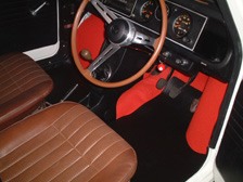(8月26日)8/19・20に固定した点火コイルは上下に車がはねた時にステーに負担がかかりそうだったので更に移動しました。今度はガチガチです。プラグコードも作り直して純生的なラインで配線しました。内装のフロアマットですがホイルハウスの部分は純生はボタンで止まっています。今回赤いカーペットを切り出して作ったのでこの部分の固定が出来ていませんでした。アクセルペダルの下とかにハタっと回り込む事があったので急いでボタンを取り付け固定しました。なんの変哲もない泥よけの写真ですがボディ塗装時にずぼらをして外さずに塗ったので白い塗料がかかっていました。綺麗な泥よけではないので上からツヤ消し黒を塗ってごまかしました(^_^;)。ヘッドカバーからオイルが滲む時があるのでパッキンを交換したいのですが新品はなく高額な相場なので液体ガスケットを併用してパッキン厚を稼いで誤魔化しました。どうやら止まったみたいでこれでオイル漏れは全く無しになりました!!!