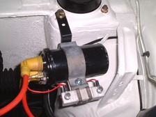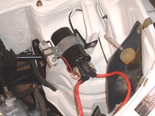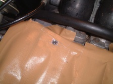 (8月20日)先日コードをぶった切った純生コイルはやはり目障りなので取り払ってボンネットワイヤーの引っかけ部用にプレートを作成しました。新コイルへの配線が空中配線だったので壁にはわして純生の配線のように持ってきました。エンジン上部を走ってるプラグコードの熱対策としてコルゲートチューブを巻きました(工具箱内のあまりで(^_^;))。あとマフラー太鼓の接続部からまだ排気漏れが有ったのでアルミ缶(エビス)を使って巻き締めをしました。