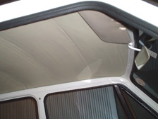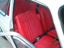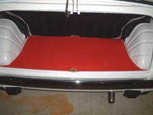 (9月11日)この車に付いていた天井の内張を染めQで綺麗に塗装して装着しました。天井は作業がしにくいので張り具合がうまくいかずへたくそに付いてます(^_^;)。太陽熱で生地が張ってくれるのを待ちましょう。工具や荷物を積んで出かけられるようにトランクにもマットをひきました。