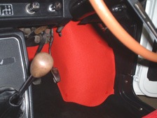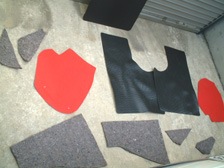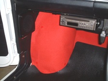 (9月5日)ホイルハウスのフロアマットが小さすぎて上部までインシュレーターやフロアを隠しきれていなかったので大きく作り直しました。スピーカーやオーディオを取り付けた時に非常に気になってたんです(^_^;)。ついでにボタンの部分も赤のボタンを購入しなおして装着しました。あと、運転席の足下はアクセルペダルを踏む時に、かかとの部分がインシュレーターをぺっちゃんこに凹ましてしまうのでフロアマットもゴムマットも凸凹になってしまいました(T_T)。インシュレーターの上にプラスチック段ボールをひいてみました。結果はどうなるかなぁ〜