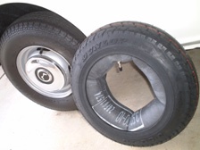 (9月10日)スペアタイヤを装着する為ホイルを塗りました。チューブのバルブ部分の出る穴が錆でボロボロだったので走行用には使えずに置いてあったものです。スペアタイヤは普通タイヤを付けると僕のエヌは入りません。キャブのインシュレーターがZ用の等長のまっすぐの物に変わっています。吸気効率をあげる当時の改造パターンですね。エンジンには良いですがスペアタイヤがスペースの関係で積めないのです(T_T)。そこで外形の小さいタイヤを用意して最近の車のスペアタイヤの様なテンパタイヤ風にしてみました。幅が細いタイヤなんで引っ張りタイヤになってます。引っ張りタイヤはホイル装着前にチューブを入れて空気を入れタイヤに癖をつけておきます。ハンドパワーで無事にタイヤを付けれたので、エンジンルームに納めました。小さいだけあって余裕で収まり、エンジンルームの風通しも良さそうです。あと雨の日対策として放置していたドア下のウェザーストリップを追加しました。