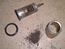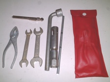 (9月20日)ニスが乾いたウッドシフトノブを装着。今までくすんで見えていましたが今は別物のようです。1000キロ以上使ったエンジンオイルを交換しました。やはり黒いですねぇ(^_^;)。キャブのエアスクリューも調整してみました。1.75回転戻しだったのですが、調整すると2回転ぐらいになりました。純正工具を譲って頂いたので袋を洗いました。ドライバーだけが欠品かなぁ・・・。先日からの続きで「S」のエンブレムの気泡部にパテを入れました。