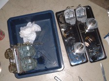 (9月4日)今日はダッシュボードの穴を塞ぐ部品が欠品しているのを補いました。本来、助手席側は取って、運転席側は小物入れになっていますが、とりあえず断面のスポンジが見えるのがダサいのでメクラ蓋をしました。材料は100均でゲット!。大きさ、合うかなぁ〜と気になっていたんです。なんと1mmの狂いもなくドンぴしゃ!!。写真のように合皮を巻きましたが合皮の厚みで穴に入りにくいので表面に貼り付けるだけに変更してとりあえず良しとしました。