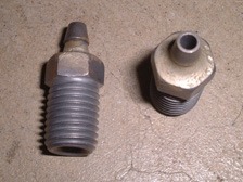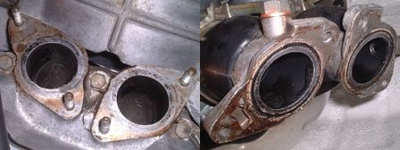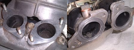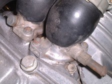 (10月3日)以前も触れたが僕のエヌにはキャブの等長インマニが装着されている。空冷ホンダZ用のインマニです。このインマニにはディスクブレーキへのバキュームホースを繋ぐ口が付いてあり、僕のは取り出し口の先のニップルが溶接で塞いでありました。単にネジで塞げばいいのになぁ・・・?!。この口は片方しか使用しないのですが両方共についています。この口を利用してバキュームホースを繋いで同調を取ってみました。ここに合うボルトにニップルを蝋付けして端子の完成です。端子に念のためOリングを着けて装着、そしてバキュームメーターを利用して左右を計ってみると・・・・。約23CM/Hgと約15CM/Hgでした。差は8CM/Hg。ライフのサービスマニュアルでは±10までなので許容範囲です。しかしパイロットスクリューをめいっぱい締め込んだ時に片方はエンストして片方はエンジンかかったままという状態なので、この差を完全なゼロにしました。するとパイロットスクリューの締め込みによる変化は左右とも一緒に!。気持ちの良いセッティングがでました(^_^)v。