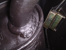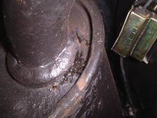 (10月6日)車検前に太鼓とセンターパイプの接続部をガスケットシートと強力バンドで繋いでいましたが、調子の良いエンジンの証のマフラーからの水がそのあたりからポタポタと地面に・・・・。下に潜って確認しても接合部は問題なし。エンジンをかけた状態でもう一度潜ると、太鼓から前部へ向かってのL字パイプの付け根の溶接が怪しいではないですか!水がしたたった跡も確認。ここが爆音君の原因でした。溶接修理をしないといけないなぁ・・・・(^_^;)。更に、ふと目を横に向けると水?いやガソリンがタンク底面に!!!。タンクの穴からじわじわと漏れているようです。ティッシュで拭き取るとタンクの外装塗装が剥げて、より一層ハイペースでしたたってきました(笑)。とりあえずガソリンをステップバンに移して、エヌのタンクを空にしてハンダで埋める作業をしました。なんとかうまく埋まってくれて黒塗装をしてガソリンを戻しました。漏れてない様子です。一時はどうなるかと焦りましたが、日曜日のイベントはなんとか行けるかなぁ・・・・。あと、余った時間でリアブレーキの調整を行いました。サイドブレーキもギンギンに効きようになりました。