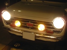 (10月22日)フォグランプを装着しました。純正と同等サイズの当時の汎用フォグランプを入手してステーを作成して装着しました。紙でステーの原型を作成し鉄板を加工して作って黒塗装しました。グリルや車体を加工してまで付けたくなかったのでステーを工夫してタイラップで取り付けできるようにしました。普段は使わないのでカバーを装着です。