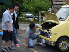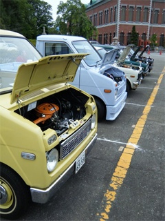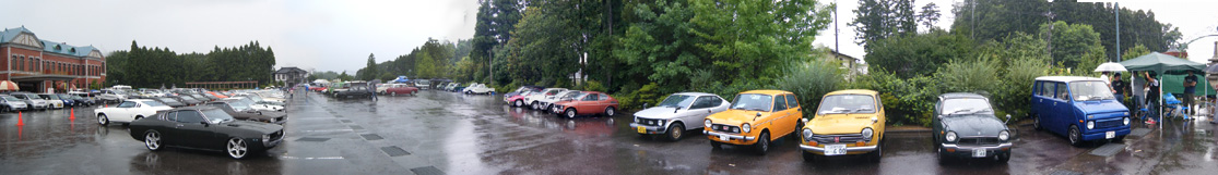 2009年7月26日 毎年恒例の「金沢クラシックカーミーティング」参加の為に金沢へ行ってきました! 昨年は豪雨でN360の出来たてオープントップからの雨漏りが無いかヒヤヒヤでした。 ・・・が、今年も雨の予報で、そして雨(午後)でした。 このイベントへの参加は、前日に会場の小松を超えて金沢まで行き観光や飲食を楽しんで宿泊し 朝に会場の小松まで戻ってくるという経路で参加しています。 旅行を兼ねているので雨の予報でも行っちゃうのです(^_^;)