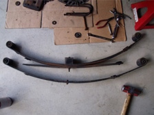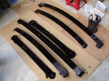 (1月20日)スペシャル板バネの塗膜や錆を落としました。ガレージ中にカスが散乱(^_^;)。コンクリ床に掃除機を走らせると深夜のTVショッピングの様に綺麗に(笑)。左右計6枚の板バネが綺麗になりました。あとは防錆塗装だぁ〜