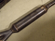 (1月17日)今日は、修理を依頼していたマフラーが仕上がってきました。いつもおせわになっている職人さんで作業が早くてビックリ(^o^)色々な溶接加工でお世話になってます。触媒風の中身は昨年の忘年会でLOVESTEPのsenseよりお聞きしていたとおりパンチングパイプが入っていました。本当はこの周りにグラスウールが詰まっているそうですが。全く無くなっていました(笑)。このパンチングパイプが内部で踊ってカラカラ鳴っていたのです。最小限の切腹で修理して頂けました。上面なのでリフトアップしても見えなくてバッチリです。ありがとうございましたm(_ _)m