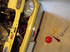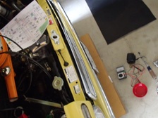 (5月5日)ステップバンは絶好調で福井クラシックカーミーティングへ出発しました・・・が、会場への道中の中間地点ほどでチャージランプがチラツキ始めました。不安な状態ながらも節電をしながら会場へ到着。テスターでバッテリーの充電状況を測定すると過充電の様子!。アイドリング時は良い具合に充電し、回転を上げると17V位まで上がってしまいます。これはレギュレターだと思い、会場で亀ちゃん号よりレギュレターを拝借して交換しましたが症状は変わらず(T_T)。次に8年弱使っているバッテリーの劣化を疑いバッテリーを新調するも変わらず・・・。ハーネスなどに問題があるのかなぁ〜と悩んだあげく仕方なく会場での修復は諦めて、この状態で帰宅しました。高速道路走行ではオルタを殺してバッテリー電源のみで走り、渋滞では低回転域しか回さないので充電しながら走り、を繰り返しながらなんとか帰れました。おまけの故障としてスピードメーターが動かなくなりました(T_T)