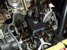 (5月4日)今度はバルブを疑ってみる事に。バルブクリアランスを測定してみました。IN運0.8、OUT運0.8、IN助0.8、OUT助0.0でした(運転席側は「運」助手席側は「助」でシリンダーを表してます)。なぜだか助手席側の排気がクリアランス0でした(^_^;)。バルブクリアランスは、やはり後期エンジンの標準値の0.14〜0.18取った方が良さそうなので今回は0.17で合わせてみました。するとどうでしょう〜今まで不安定だったアイドリングが安定!!!!!。どうやら2009/11/5に全部を0.8で合わしてから調子が狂っていたみたいです。カーボンでも噛んでいた状態で当時調整して、今回見つけた閉まりきっていない状態が発生したのかな・・・・。キャブのセッティング変更なども並行して行っていたのでキャブだと思いこんでました、おまけにクーラーコンプレッサーやクランプWプーリーの関係でタペット調整がやりにくかったので手を出してなかったのもありますが・・・・。ということで、調子の良かったファイナルステージ遺言セッティングにジェット類を組み直しました〜。そして車も4ヶ月ぶりにポリマーWAXコートしてピカピカで良い気分(^_^)v。ガレージに収めて、床が汚れない様にエンジン下部のブローバイホースにティッシュペーパーを詰めようとすると・・・ポタポタ・・・・・・え?!ガソリン漏れです(T_T)。キャブの脱着などで燃料ポンプからキャブまでの燃料ホースがクーラーのファンベルトに擦ってしまって穴が空いてしまいました(^_^;)。仕方ないので、またバラして秘蔵だった純正燃料ホースを組み込んでやりました。今度はしっかりとホースを壁に沿わせてベルトと干渉しない様にバッチリです。