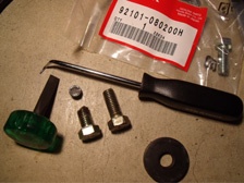 (2月6日)キャブレターの調子が悪く、かぶるので新しいジェットを作成。部品取りのボロボロのキャブから取り出したジェット。これを磨いて掃除してから穴をオリジナルサイズであけ直しました。そしてステップバンのキャブに装着!