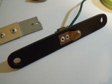(5月29日)パーキングランプがチラチラと点灯するのでサイドブレーキスイッチを確認すると破損していました。メーター周りで赤いランプが点灯すると先日のチャージランプ点灯を想像してヒヤヒヤするのです(^_^;)。18年前に新品のスイッチに交換してから10年程前に再び破損し、それをアルミ板で補修していたのですが、またまた破損しました。スイッチ自体のプラスチック素材に問題があるのかな?!。今回は、手元に有ったカイダックという樹脂を加工して全体を作成してみました。プラスチックよりも弾力のあって粘りがあるから割れないと思います。接点部分は純正から外して流用するのでリベットをドリルで揉んで外しました。カイダックを16mm×112mmで切り出して6mmの穴を96mm間隔で空けて、スイッチ固定の穴2.5mmを2個空けて土台は完成。