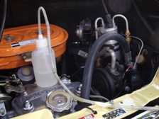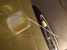 (10月4日)足回りも無事に完成したのでイベント前の細かな部分の整備です。久々にキャブレターのジェット交換をおこなってみました。良くなると良いのですが・・・。エンジンルームの各所に工具をヒットさせた塗装剥げがあるのでタッチアップをしておきました。交換したATF&エンジンオイルの量もレベルゲージのど真ん中でOKでした。念のためバッテリーも1時間ほど充電しておきました。せっかく装着したピロアッパーでキャンバー角調整をしないのは勿体ないので測定してみました。フェンダーから下げ振りを垂らして糸からホイル上部と下部の距離を測定し、その差とホイルの直径の数値を使って三角関数で角度が算出できます。右0.8°、左1.0°でした。純正既定値が1°ですから適当に調整しておいたピロの調整で良い具合でした。