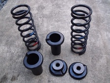 (1月15日)関東のオートマLifeさんのガレージにお伺いして板バネリフレッシュ加工の作業をさせていただきました。ローダウンブロックを使用しなくても良い様に調整しました。目玉型のブッシュも交換です。板バネの擦れ合う部分のブッシュは事前に汎用社外品を購入しておきました。しかし1枚目と2枚目の間のブッシュは特殊だったのでSPI製のスペシャルパーツを製作して頂きました。近日発売予定みたいです!?(笑)