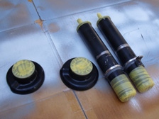 (9月27日)ショックケースの塗装前に、不具合が有るといけないのでどんなものかと仮装着を行いました。ブレーキホースの固定が流用ショックのマウントでは、うまくいかないので工夫が必要そうでした(流用ショックのマウント部分は車高調が当たりそうなのでカットの予定)。アッパーも問題なく付いてくれました\(^_^)/。車高の落ち具合は、今まで装着していた超昔のファイナルステージ製ショックと同じ位になりました。ブレーキホースの固定部分を改善すれば1cmは落とせるので理想の位置になりそうです。