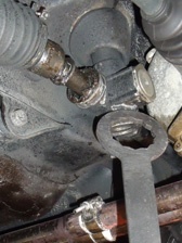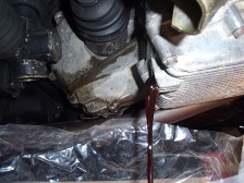 (10月1日)正確な現状のトーインを測定してみました。tamso式サイドスリップ調整第二弾!です(第一弾はS600車検前整備で行った)。凧糸と下振りの代わりのボルトを用意しタイヤの中心溝にぶら下げて地面に印を付けます。タイヤの前後に行い、左右のタイヤとも行います。そして距離を測定!。僕のステップの現状はトーアウト2mmでした。純正値を調べると「トーイン1〜3ミリ」「キャンバー角1°」となっていたので、車高短でキャンバー角が付いている車はトーアウト気味にしてサイドスリップ検査をクリア出来ていたのだと思います。今回キャンバー角を垂直に近い状態にまでもって来れたのでトーは0mmぐらいにしてみようかと思ってます。今日は時間の関係で調整出来ず。続いて気になっていた右ラックエンド付け根のガタ。ブーツを外して揺さぶってみるとラック本体が揺れていました(^_^;)。ピニオンとのの当たり調整で治るかと思いましたがダメでした。まぁラックエンドが外れてしまうような状況じゃなかっただけ良いでしょう(^_^;)。予備のラック一式を今度オーバーホールして交換する事とします。続いてドラシャの付け根からのATFオイル漏れが少しあるのでオイルシールを交換する事に。片方は交換済みなので、もう片方のオイルシールを準備してATFを抜きました。ドラシャを抜くと・・・・あ!こっち、前に換えた方だ(T_T)。予備は無い・・・。しかたなく元通りに組み付けてATFを入れ直して終了。ただのATF交換作業となってしまいました(T_T)。ショックとピロの固定部分の良い工具が見つかったので本締めをし、そして今までクーラー配管の影響で1個しか付けていなかったホーンを2個に戻しました。ピロアッパーにしたおかげでエンジンルームへのアッパーマウントの飛び出しが無くなったので装着可能となったのです(^_^)v。なんか今日は時間に追われていっぱい作業をしたわりには、あまり変化のない作業だった・・・・疲れた。