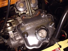 (10月5日)くすんでいたヘッドカバーを軽くお掃除しておきました。皆さんのようなメッキカバーの輝きにはなりませんねぇ(T_T)。HONDAの文字の周りの墨入れを迷ってます。以前のMT車用ヘッドカバーはボディカラーを入れてましたが、AT車用ヘッドカバーに交換してから未塗装です。うーん。どうしょっかなぁ〜