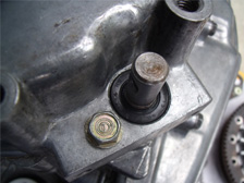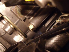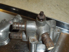 (1月26日)ステップバンの謎のオーバーヒートは解決していません。どういう条件で発生するのか・・・。純正の水温計は問題なく正確な筈ですが、追加で水温計を装着しようと思います。となると、センサーをどこかに付けなくてはいけないのです。アッパーホースにアダプターを付けて割り込ませるか、バイパスホースにアダプターを付けて割り込ませるか・・・・。スッキリいきたいので、サーモケースのエア抜きブリーダーボルトの穴を利用してなんとかならないかと・・・。とりあえずブリーダーボルトを外そうとしてもカチコチで外れず(T_T)。CRC556を吹き付けておきました。