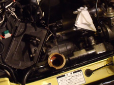 (3月2日)オーバーヒートの原因を探る為に、クーリングファンのモーター不良も疑ってみることにします。ファンを現在使っているATやクーラー装着車用の大容量タイプからMT用の小型なモノに交換しました。ラジエターアッパーホースを外さないと交換できなくて面倒な作業でした・・・