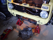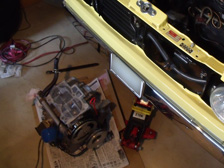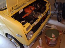 (5月3日)エンジン降ろしを開始しました。ラジエターやキャブなど補記類を外していきます。