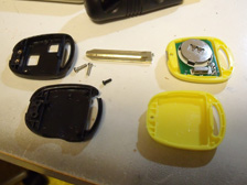 (3月20日)キーレスのリモコンを見るとパキパキに割れているのを発見。何故いままで気づかなかったのか?!スペアの新品を確認すると、未使用なのに経年劣化してました。さすがニーハオ製。キーレスのシステム全部交換を覚悟しましたが、リモコンケースだけの販売を発見したので、色気を出して黄色を購入。外観は一緒でしたが内部構造が少し違ったのでプラモデルの余ってるライナーを仕込んでスペーサーの様に嵩上げして組み込みました。無事に黄色いリモコンキーの完成!